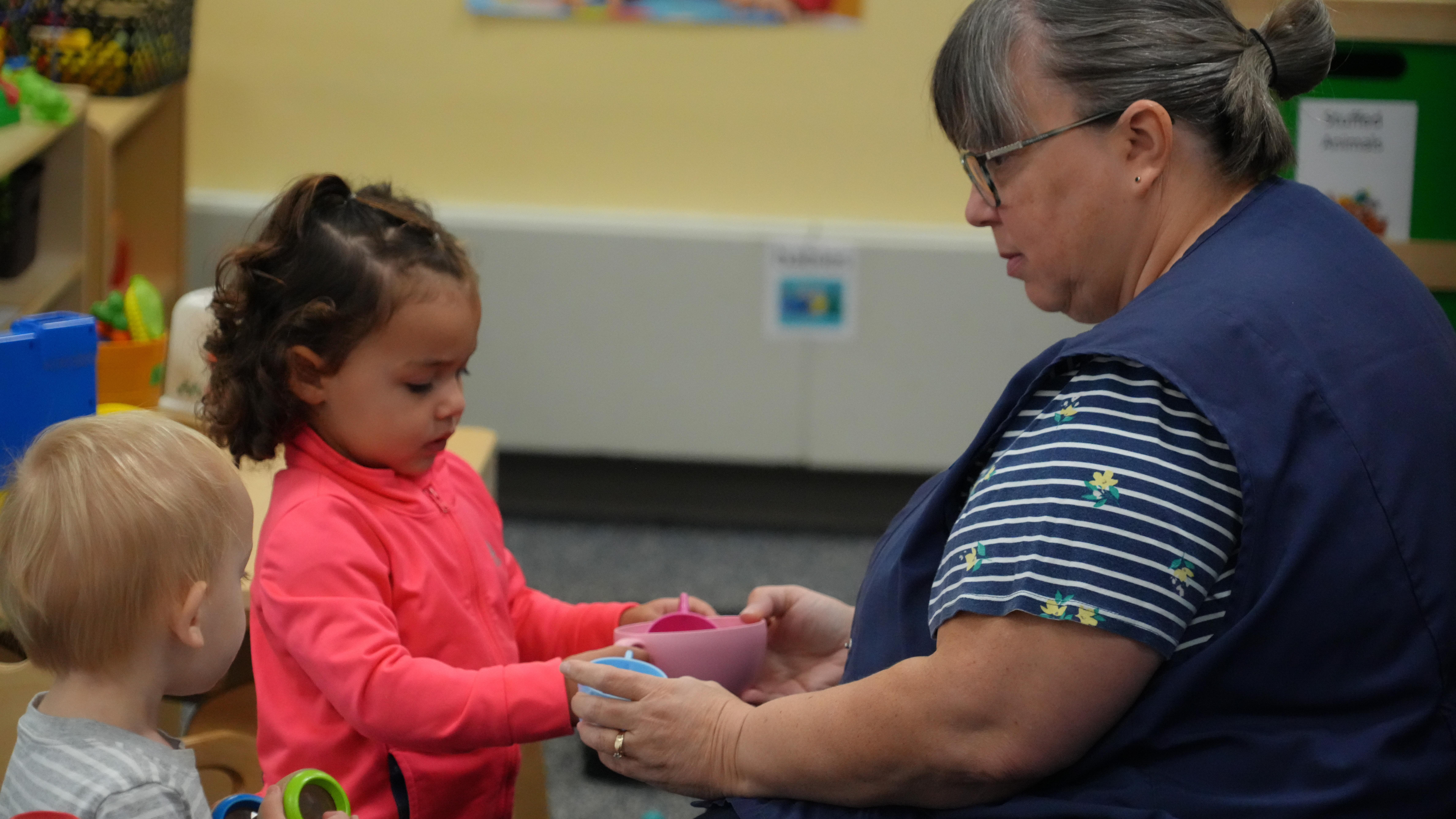 A play-based customized schedule and curriculum is offered for each age group: