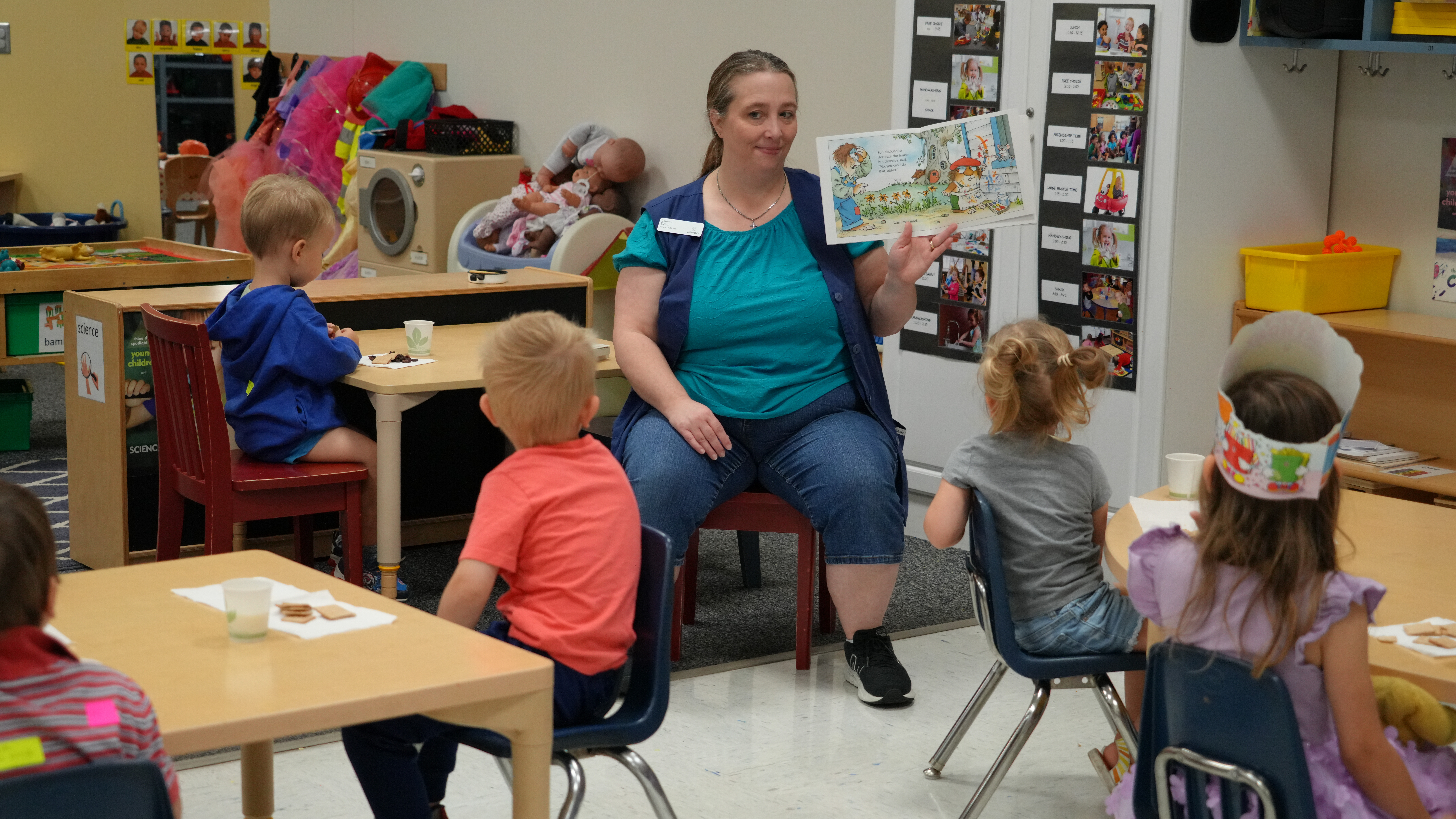 Calvary Hourly Childcare provides flexible scheduling - attend several days a week, once a week, or on an as needed basis. We operate for nine months a year - September to May - and are open Tuesday - Friday from 8:30 a.m. - 3 p.m. We have classrooms for toddlers (16-33 months) & preschoolers (33 months - Kindergarten). Please see our calendar for more details on closure dates for holidays and teacher workshops. Many families combine the Hourly Childcare & Pre-Kindergarten - a nice option for the parent who works part time & needs a little extra childcare coverage. Calvary Hourly Childcare is licensed by the Minnesota Department of Children, Youth and Families Licensing Division.